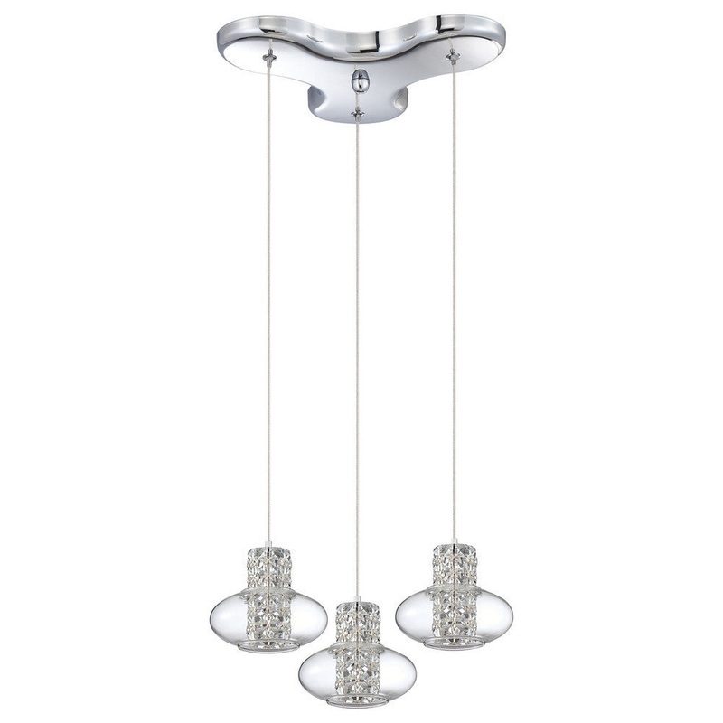 With a trending contemporary style, this light will brighten up the room in more than one way. The sleek design hold that touch of elegance to give any room the sophisticated look it needs. 3 Light Pan in a Chrome finish featuring Clear Glass shades surrounding decorative Crystal