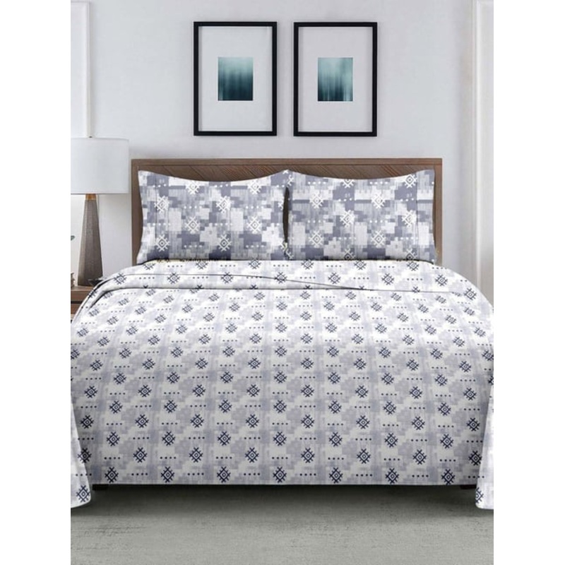 Ariana ROME White & Lavender Cotton 210 TC Double Size Bedsheet With 2 Pillow Covers