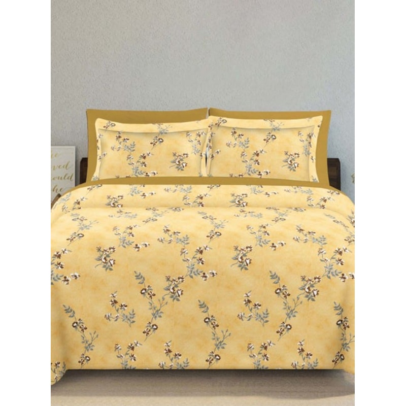 Ariana SARDINIA Yellow Cotton 144 TC King Size Bedsheet With 2 Pillow Covers