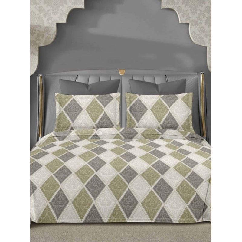 Ariana SORRENTO Grey & Green Cotton 144 TC Double Size Bedsheet With 2 Pillow Covers