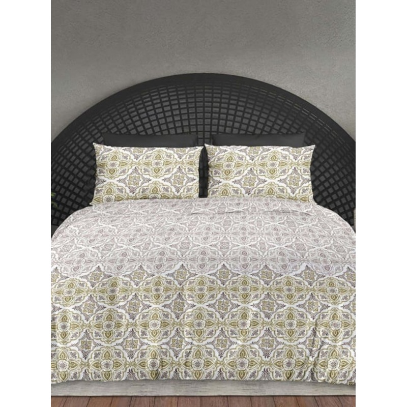 Ariana TUSCANY Grey & Green Cotton 300 TC Double Size Bedsheet With 2 Pillow Covers