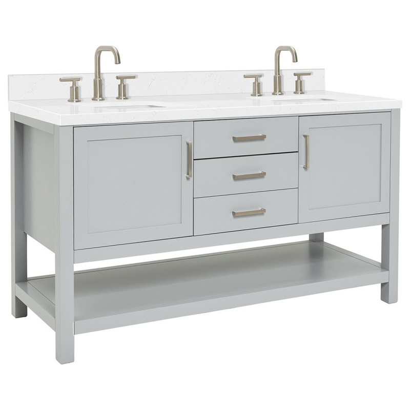 Ariel Bayhill 60″ Double Rectangle Sink Bathroom Vanity, Carrara Quartz – Transitional – Bathroom Vanities And Sink Consoles – by Atlas International, Inc.