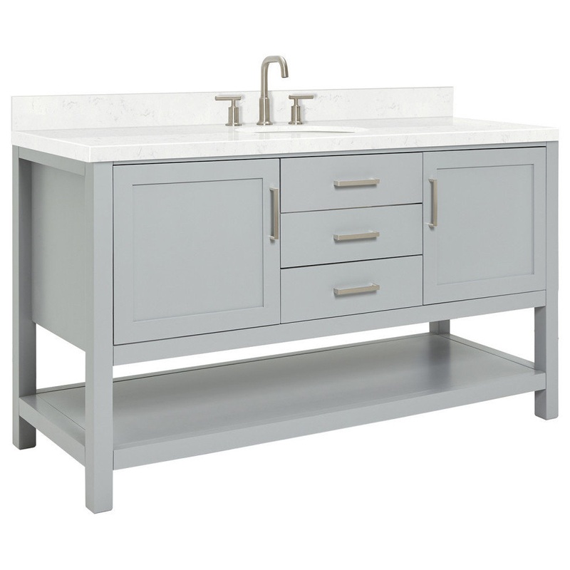 Ariel Bayhill 60″ Single Oval Sink Bathroom Vanity, Carrara Quartz – Transitional – Bathroom Vanities And Sink Consoles – by Atlas International, Inc.