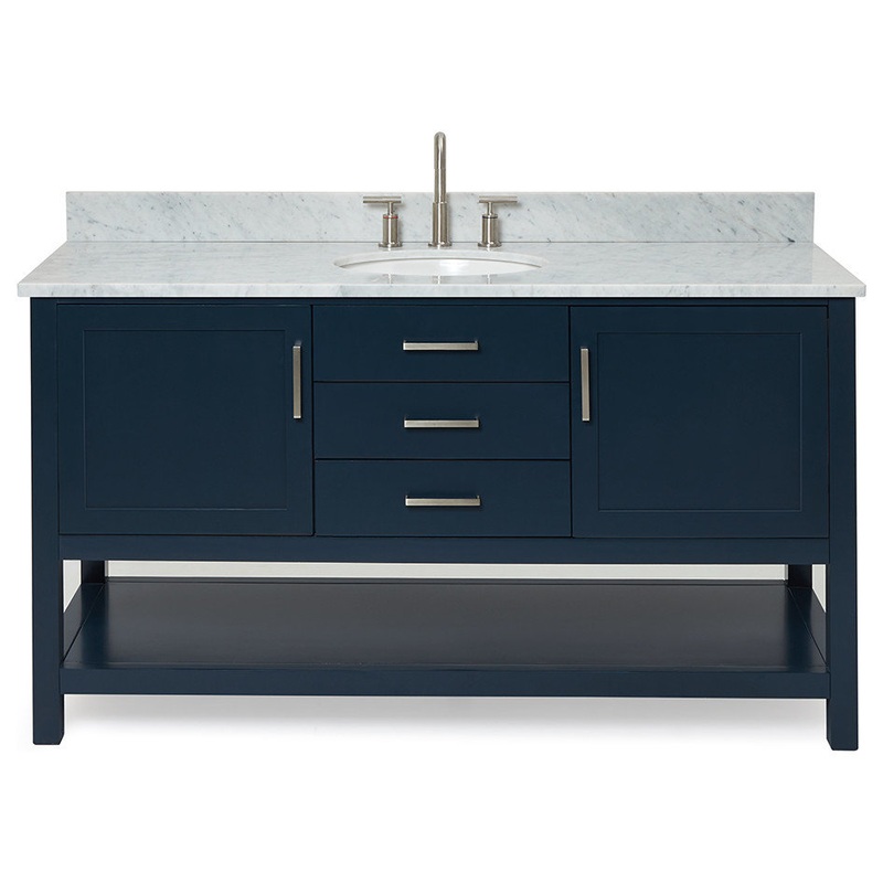 The Bayhill Collection from ARIEL Bath features a sturdy cabinet with a solid wood frame and an open shelf at the bottom to meet all your storage needs. Soft-closing doors and self-closing doors are standard to all ARIEL bath vanities and cabinets. -Covere