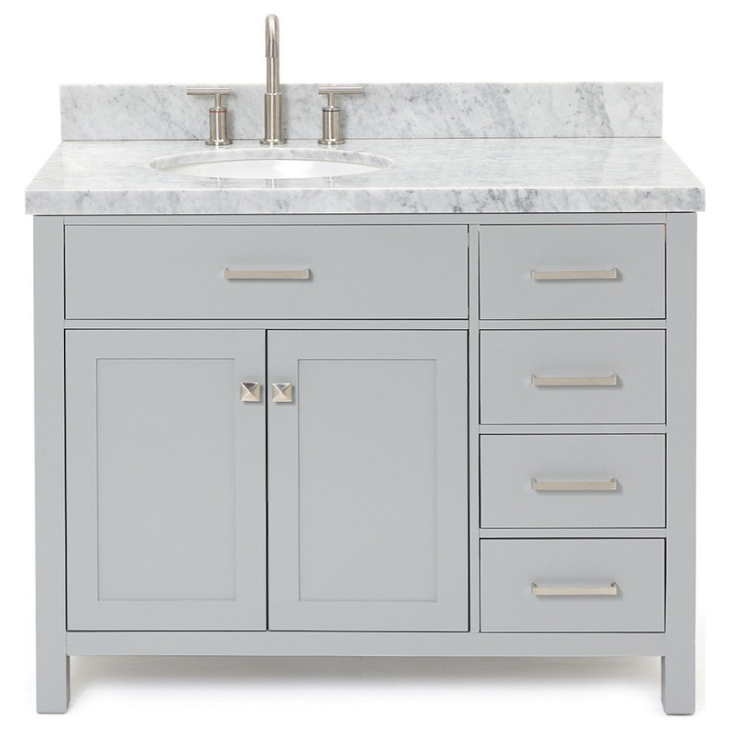 Elegance and simplicity keynote the versatile Bristol collection. With countertops made from high quality heat and scratch resistant Italian Carrara marble, this vanity is sure to satisfy even the most discerning tastes. Clean lines and square shapes are accented by the modern handles that make the Bristol collection a perfect choice for your bathroom decor.