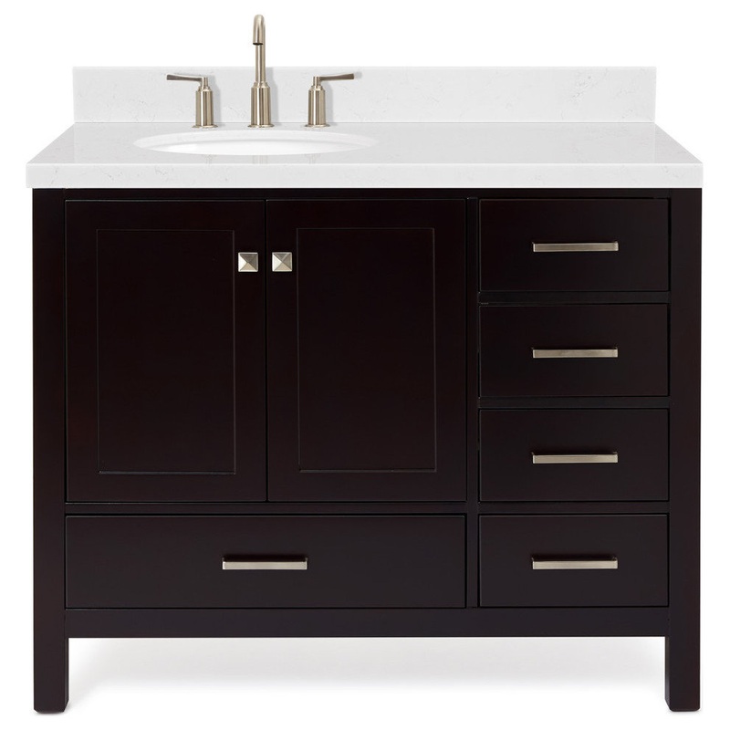 Ariel Cambridge 42″ Left Offset Single Oval Sink Vanity, Carrara Quartz – Transitional – Bathroom Vanities And Sink Consoles – by Atlas International, Inc.-A042SLCQOVOESP