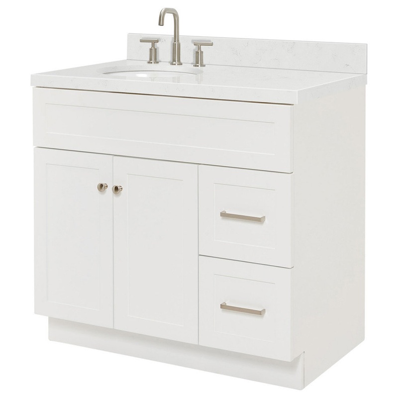 Ariel Hamlet 36″ Single Left Oval Sink Bathroom Vanity, Carrara Quartz – Transitional – Bathroom Vanities And Sink Consoles – by Atlas International, Inc.-F036SLCQOVOWHT
