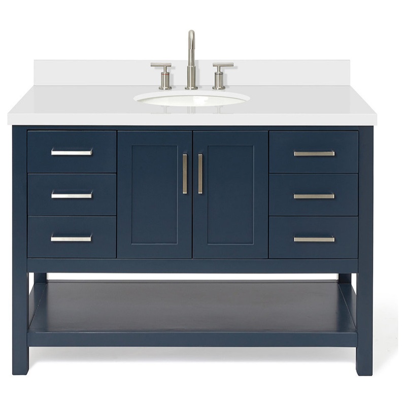 Our Magnolia bathroom vanity collection is handcrafted of solid wood to ensure quality and durability. By combining a top drawer, middle open shelf, we’ve created a functional piece for any bathroom. The open shelf at the bottom is a great place to store your accessories or keep toiletries within easy reach. A wide variety of options are available such as countertop material, sink shape, and cabinet color.