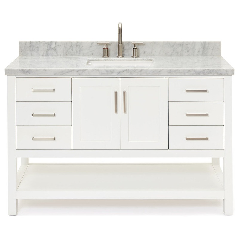 Our Magnolia bathroom vanity collection is handcrafted of solid wood to ensure quality and durability. By combining a top drawer, middle open shelf, we’ve created a functional piece for any bathroom. The open shelf at the bottom is a great place to store your accessories or keep toiletries within easy reach. A wide variety of options are available such as countertop material, sink shape, and cabinet color.