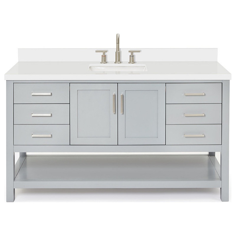 Our Magnolia bathroom vanity collection is handcrafted of solid wood to ensure quality and durability. By combining a top drawer, middle open shelf, we’ve created a functional piece for any bathroom. The open shelf at the bottom is a great place to store your accessories or keep toiletries within easy reach. A wide variety of options are available such as countertop material, sink shape, and cabinet color.