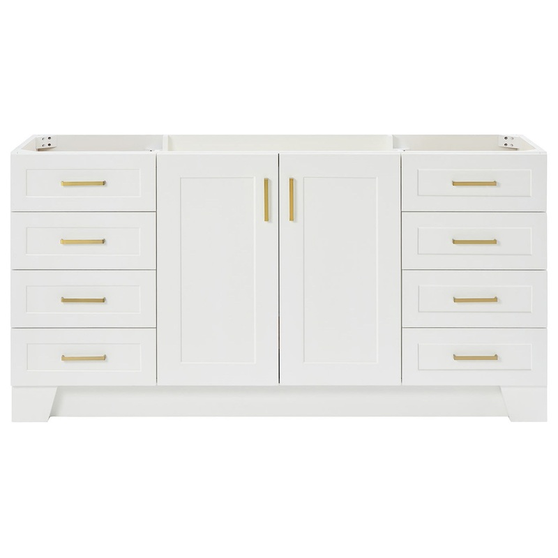 The Taylor vanity collection by ARIEL Bath is the perfect addition of style and flare for any bathroom while still remaining a truly timeless design. Featuring a hidden pull-out drawer behind each pair of cabinet doors, the Taylor vanity is truly the ideal combination of function and form. Available with multiple hardware color and cabinet finish options, you can be sure youll find your perfect match with the ARIEL Taylor vanity collection. Ariel Q066S-BC Vanity Cabinet Package Includes: Wood vanity cabinet with 2 doors and 8 drawers Included: fully assembled base cabinet, hardware Ariel Q066S-BC Features: Covered under Ariel’s 3 year limited warranty Hardwood plywood construction for lasting beauty and durability Free standing installation – vanity is seated on the floor with wall anchors, providing a functional design Two soft-closing doors with adjustable hinges so you’ll never have to worry about hearing a door slam Eight Full-Extension, Dove-Tail Construction, Soft-Closing Drawers Dovetail construction drawer boxes for additional strength and durability Vanity top and sink are not included with this model – must purchase separately Coordinates with products from the Taylor line Ariel Q066S-BC Specifications: Cabinet Width: 66″ (left to right) Cabinet Height: 34-1/2″ (top to bottom) Cabinet Depth: 21-3/5″ (front to back) Cabinet Installation Type: Free Standing Number of Doors: 2 Number of Drawers: 8