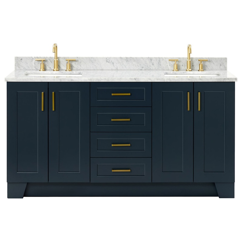 The Taylor vanity collection by ARIEL Bath is the perfect addition of style and flare for any bathroom while still remaining a truly timeless design. Featuring a hidden pull-out drawer behind each pair of cabinet doors, the Taylor vanity is truly the ideal combination of function and form. Available with multiple hardware color and cabinet finish options, you can be sure youll find your perfect match with the ARIEL Taylor vanity collection. Included Components: Covered under Ariel’s 3 year limited warranty Wood vanity cabinet with 4 doors and 4 drawers Carrara White Marble countertop with 1.5 in. edge and matching backsplash Faucet is not included and must be purchased separately Cabinet Features: Hardwood plywood construction for lasting beauty and durability Free standing installation – vanity is seated on the floor with wall anchors, providing a functional design Four soft-closing doors with adjustable hinges so you’ll never have to worry about hearing a door slam Four Full-Extension, Dove-Tail Construction, Soft-Closing Drawers Soft close drawer slides operate on smooth ball-bearings and prevent drawers from slamming shut Dovetail construction drawer boxes for additional strength and durability Vanity will need to be assembled Vanity Top Features: Marble vanity top includes sinks 6 pre-drilled faucet holes per basin Each sink features its own rectangular single basin workspace Center drain location provides optimal draining capability Equipped with an overflow drain to help prevent spillage Vanity top includes matching backsplash Cabinet Specifications: Cabinet Width: 66″ (left to right) Cabinet Height: 34-1/2″ (top to bottom) Cabinet Depth: 21-3/5″ (front to back) Number of Doors: 4 Number of Drawers: 4 Vanity Top Specifications: Vanity Top Width: 67″ (left edge to right edge) Vanity Top Depth: 22″ (front edge to back edge) Backsplash Height: 4″ Number of Basins: 2 Sink Dimensions: 7-1/2″H x 15-1/8″W x 20-1/4″L Sink Basin Dimensions: 18-5/16″ L x 13″ W x 6-1/2″ D Number of Faucet Holes: 6 Faucet Centers: 8″ (distance between the installation holes for the faucet handles)