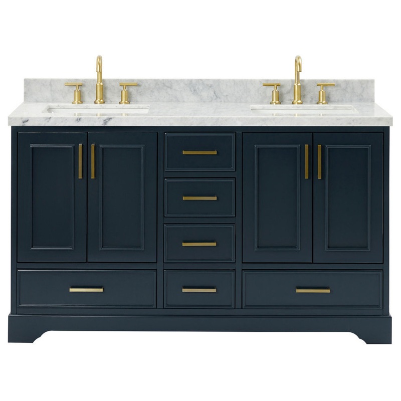 The Stafford 61″ bathroom vanity combines traditional style with elegance, making it an ideal choice for any bathroom space. Hardwood & plywood construction ensures lasting beauty and durability. Ample storage space, including a cabinet and dovetail drawers, ensures functionality. The carrara marble countertop adds a touch of sophistication. Complete with satin brasshardware, this stunning vanity is the perfect upgrade for your bathroom.