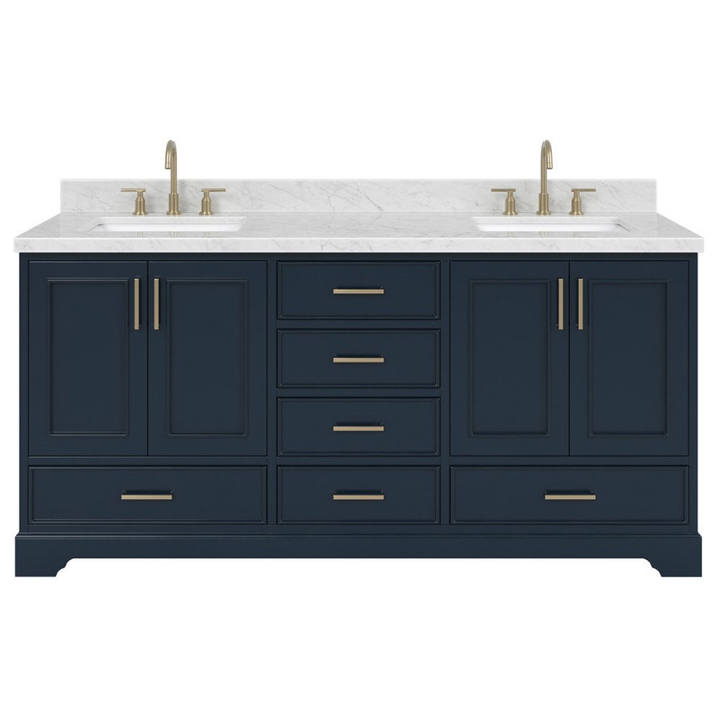The Stafford 73″ bathroom vanity combines traditional style with elegance, making it an ideal choice for any bathroom space. Hardwood & plywood construction ensures lasting beauty and durability. Ample storage space, including a cabinet and dovetail drawers, ensures functionality. The carrara marble countertop adds a touch of sophistication. Complete with satin brasshardware, this stunning vanity is the perfect upgrade for your bathroom.
