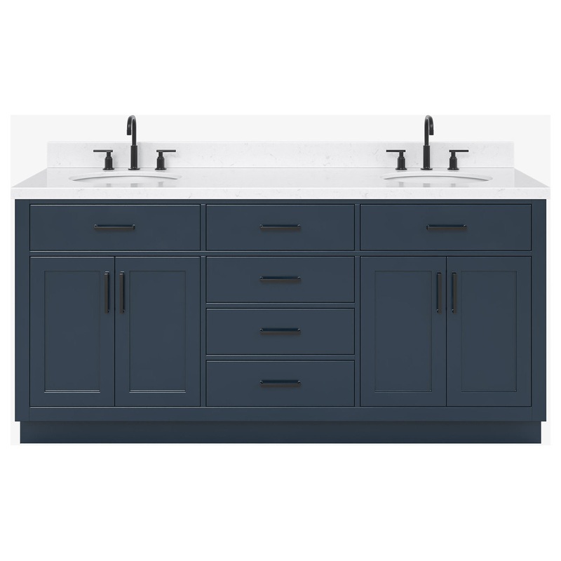 The Hepburn bathroom vanity maximizes all space for optimum storage capacity. Constructed from hardwood frame will be sure to last for many years to come. This vanity is the perfect combination of elegance and form, taking inspiration from traditional cabinetry but with a modern twist. Included Components: Covered under Ariel’s 3 year limited warranty Wood vanity cabinet with 4 doors and 6 drawers Quartz vanity top with two sinks and backsplash Faucet is not included and must be purchased separately Cabinet Features: Constructed from wood providing a lifetime of durability Free standing installation – vanity is seated on the floor with wall anchors, providing a functional design 4 door design provides easy access to storage space 4 full extension drawers with soft-close slides and 2 pocket drawers allow for organized storage Soft close drawer slides operate on smooth ball-bearings and prevent drawers from slamming shut Vanity cabinet includes matching decorative hardware Vanity will need to be assembled Vanity Top Features: Quartz vanity top includes two sinks 6 pre-drilled faucet holes per basin Each sink features its own oval single basin workspace Center drain location provides optimal draining capability Equipped with an overflow drain to help prevent spillage Vanity top includes matching backsplash Cabinet Specifications: Cabinet Width: 72″ (left to right) Cabinet Height: 34-1/2″ (top to bottom) Cabinet Depth: 21-1/2″ (front to back) Number of Doors: 4 Number of Drawers: 6 Vanity Top Specifications: Vanity Top Width: 72-1/4″ (left edge to right edge) Vanity Top Depth: 22″ (front edge to back edge) Backsplash Height: 4″ Number of Basins: 2 Sink Dimensions: 8″H x 20″W x 16″L Sink Basin Dimensions: 16-1/4″ L x 13″ W x 7″ D Number of Faucet Holes: 6 Faucet Centers: 8″ (distance between the installation holes for the faucet handles)
