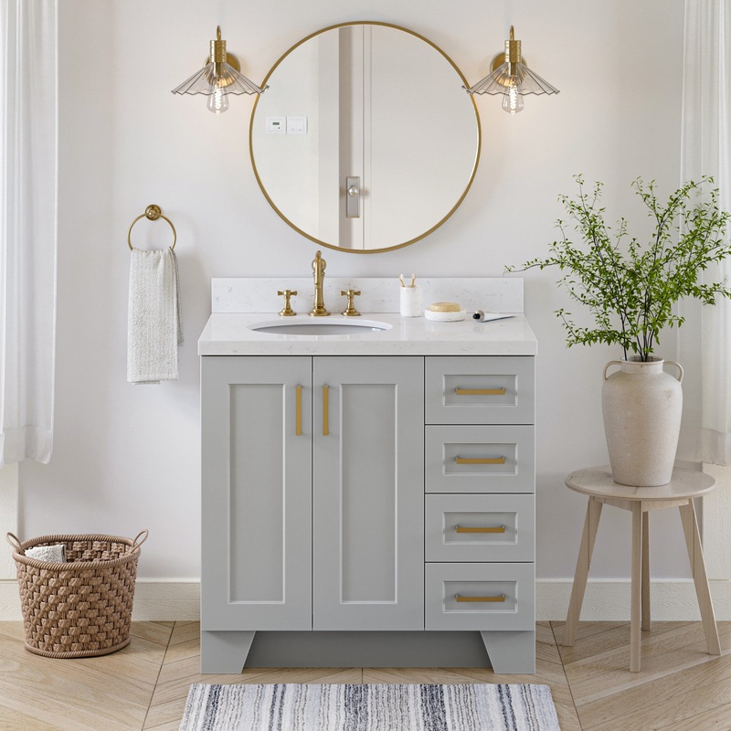 Ariel Taylor 36″ Left Offset Single Oval Sink Bathroom Vanity – Transitional – Bathroom Vanities And Sink Consoles – by Atlas International, Inc.-Q036SLCQOVOGRY