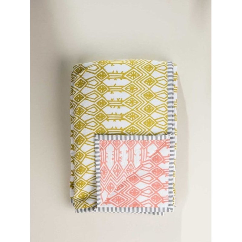 GR4670178258Arka Cotton Cambric And Flannel Lime and Coral Singla Dohar