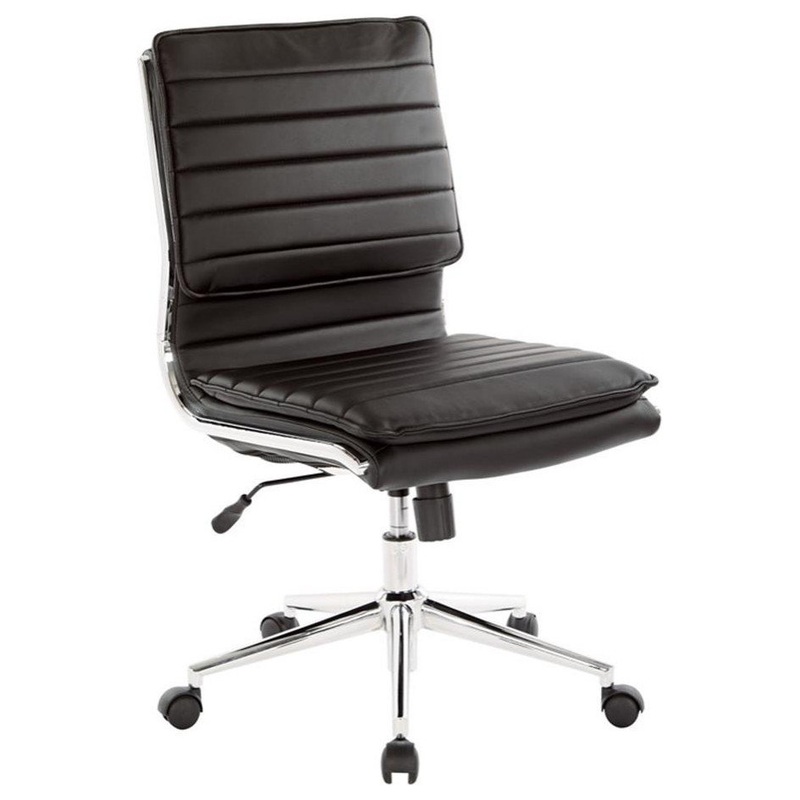 Armless Mid Back Manager’s Faux Leather Chair in Black with Chrome Base – Contemporary – Office Chairs – by Homesquare