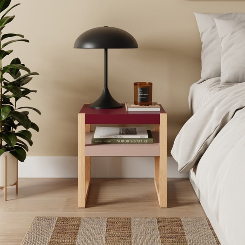 The Arnie bedside table is a bold and playful addition to any bedroom, designed to bring a sense of fun and individuality to your space. With its dual-colour finish, it introduces a unique pop of personality while maintaining a clean, modern silhouette. The open storage compartment offers a practical space for keeping nighttime essentials within easy reach, perfect for books, glasses, or decorative items.
