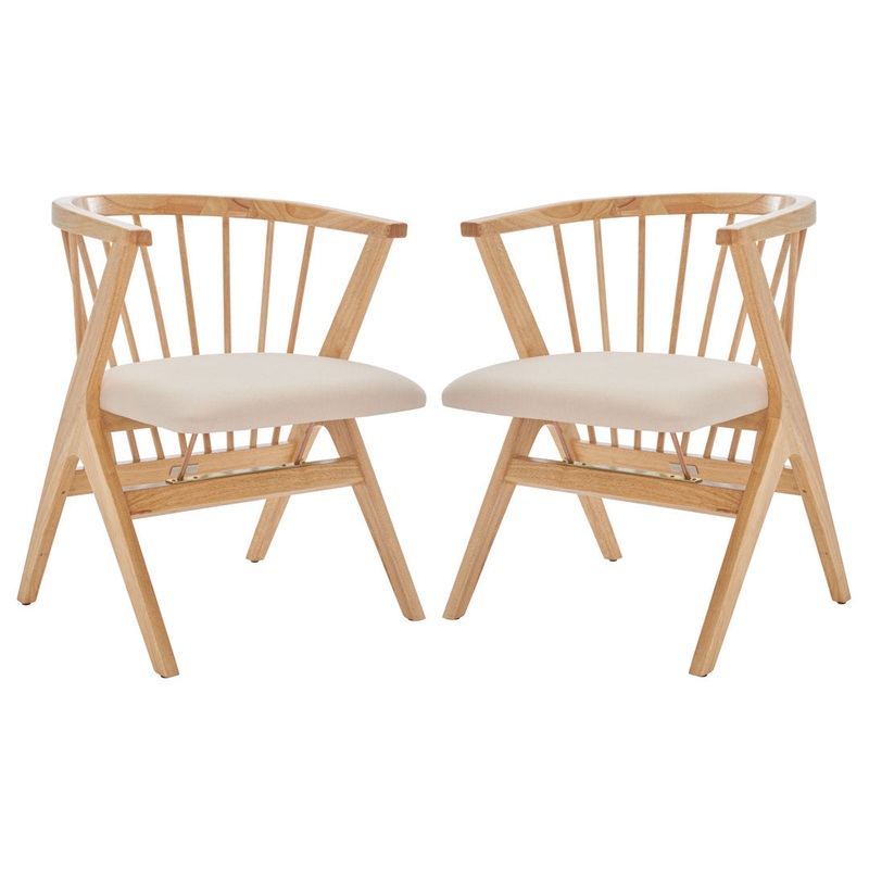 This set of two dining chairs brings a Scandinavian-inspired design into your dining room or living room, with its minimalist look and curved silhouette. It’s made from solid and engineered wood in a sleek finish. Each chair rests on four angled legs that connect organically to the curved slatted back. We love the foam-filled, polyester-upholstered seat, which provides additional support as you enjoy dinner or your morning cup of coffee. Best of all, this set arrives fully assembled, so you can use these side chairs right away. Mistana Upholstery Color: Natural, Color: Beige