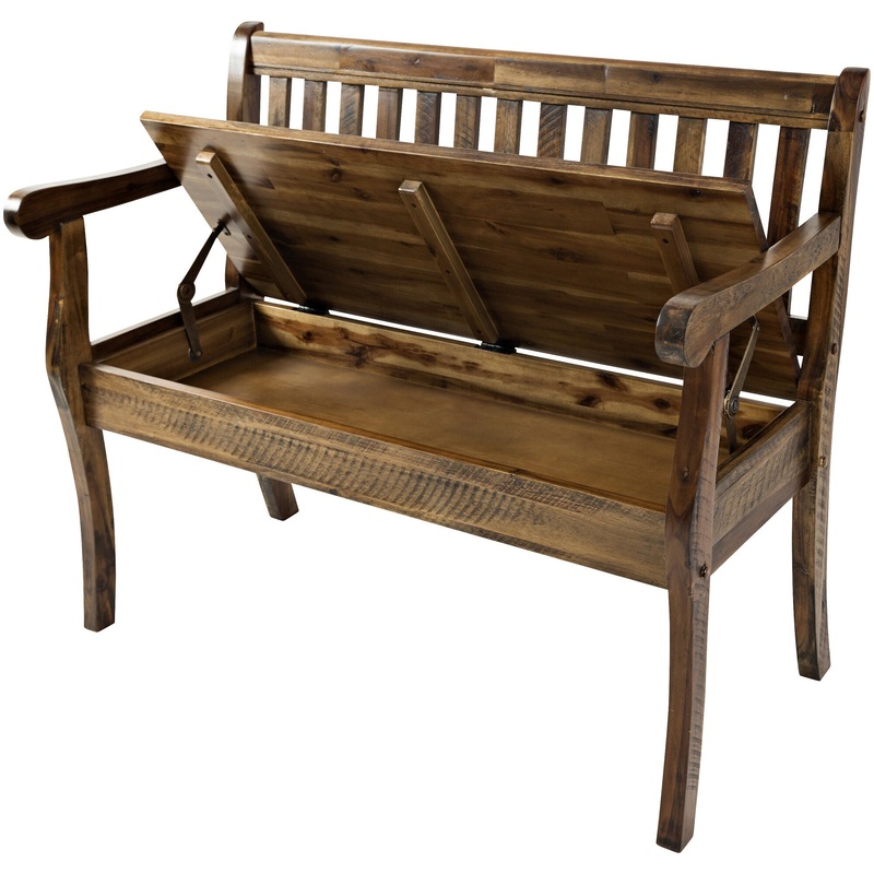 The Artisans Craft storage bench has the look of a handmade piece of furniture. Purposefully distressed and rough-hewn, it’s brimming with rustic charm. This wooden bench is perfect for the entryway, as a place to sit and remove shoes, or in the dining room, den, or even the bedroom. The seat lifts up to reveal a roomy storage compartmentgreat for clothing, gloves and scarves, table linens, etc. Complement your traditional, country or classic dcor with the Artisans Craft bench. Made of acacia wood.