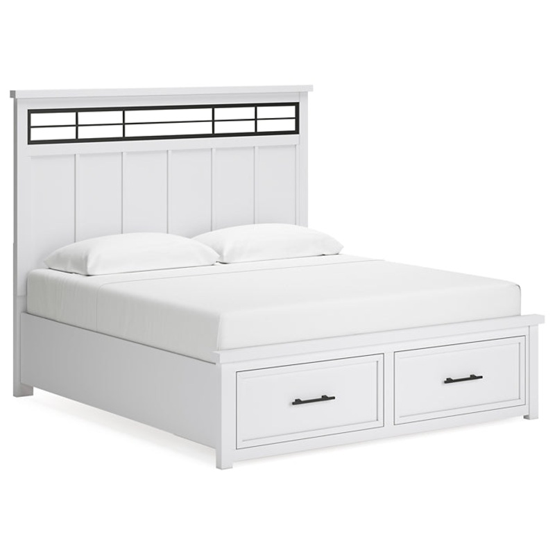 This king panel storage bed delivers casual style with substance. An inset metal detail on the headboard displays a unique take on modern farmhouse design. The bed's sturdy silhouette, classic white finish and black pulls exude a comfortably cozy vibe in y