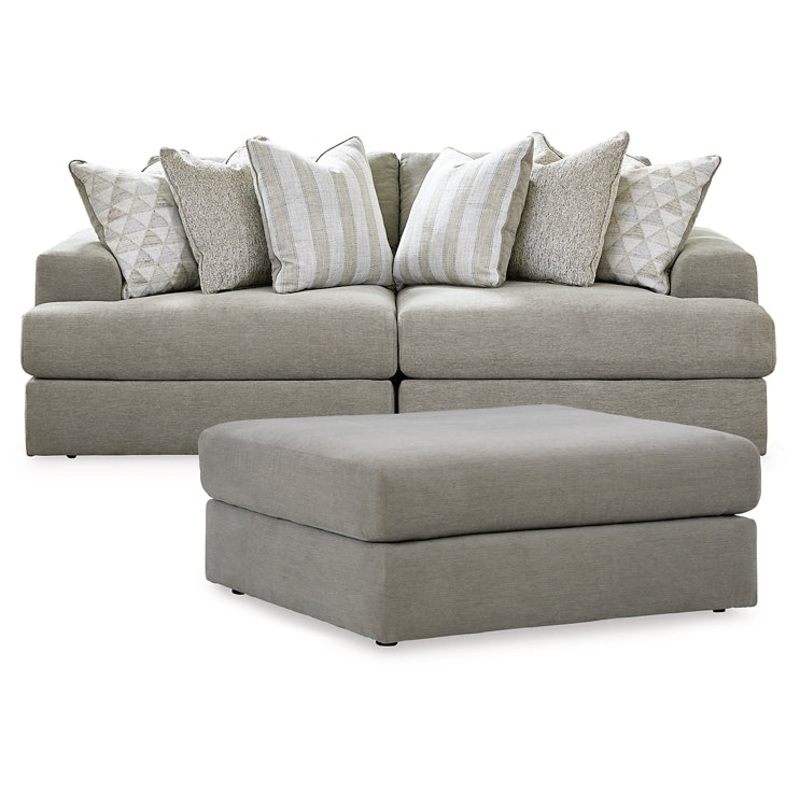 The casual, spacious shapes of this seating package make it fully lounge-ready. Deep seating invites you to sink right in, with bold beveled block arms that are softened by bullnose waterfall cushions. Best of all, the modular design lets you stage the pie