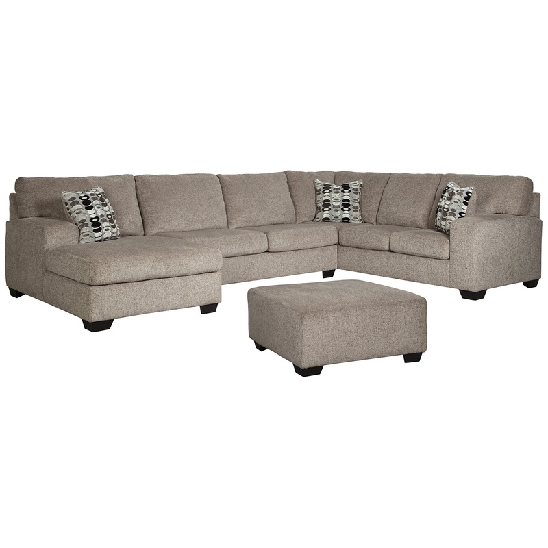 A mastery in less is more, this sectional with ottoman manages to make cool, contemporary design so warm and cozy. A new twist on neutral, the sectionals soothing "platinum" tone upholstery is incredibly plush to the touch. Gently rounded corners give the