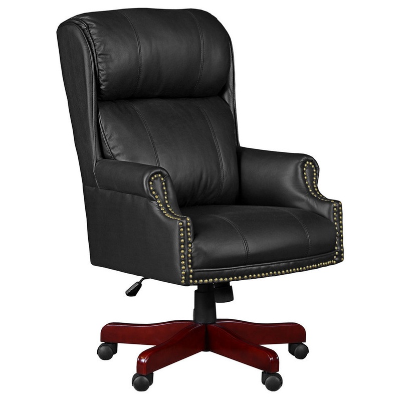 The Barrington brings with it luxury, comfort and elegance. It combines plush cushioning and gorgeous top-grain leather upholstery. Stately brass colored trim accents the chair frame, which sits atop a beautiful hardwood mahogany five-point base. The Barri