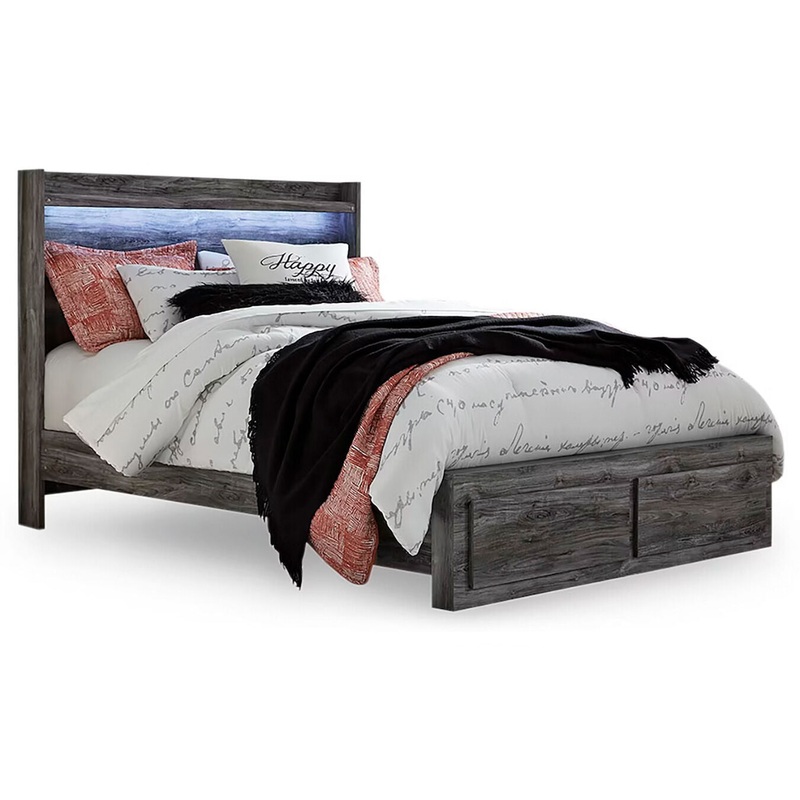 Rest in the beachy style and practicality of this queen panel storage bed. Its driftwood and surfer-inspired smoky finish gives this bed a rustic look that's perfect for creating an island escape in the room. Two under bed storage drawers provide ample roo