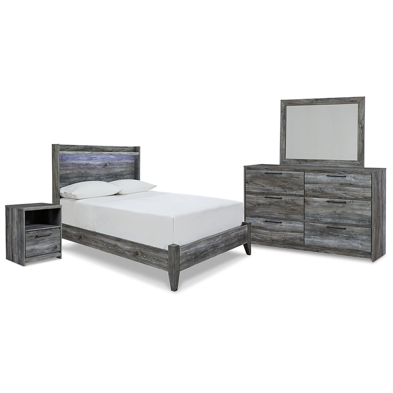Baystorm Full Panel Bed with Mirrored Dresser and Nightstand