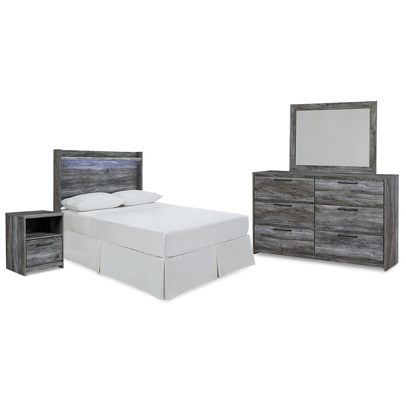 Baystorm Full Panel Headboard with Mirrored Dresser and Nightstand