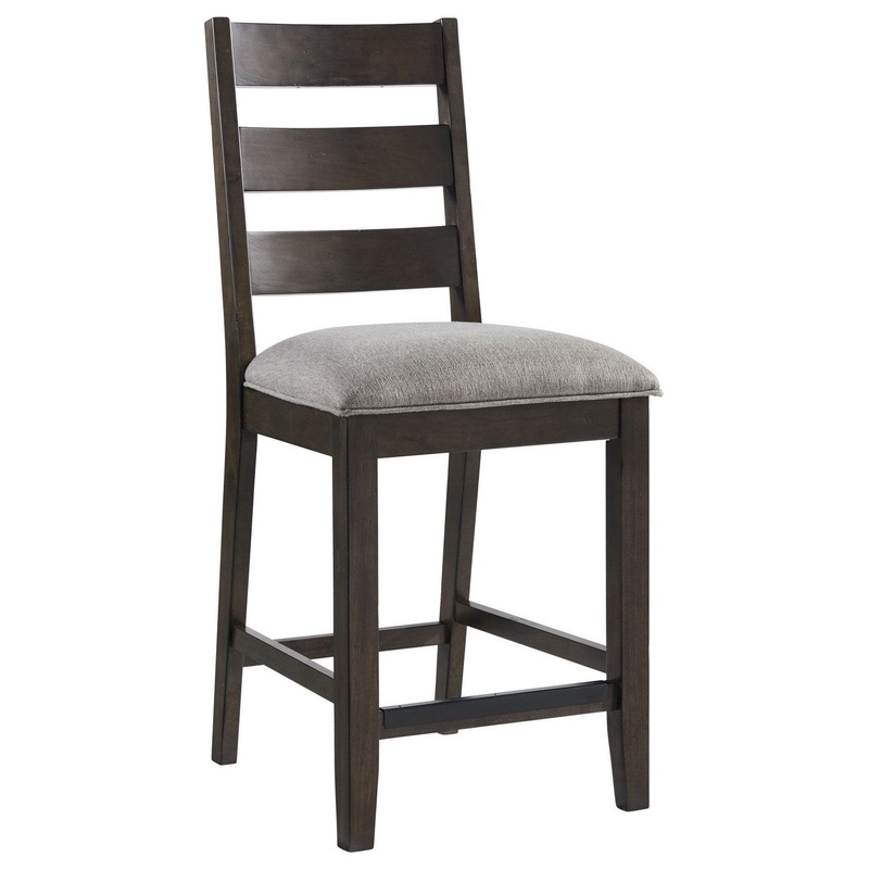 Experience both comfort and style with the Beacon Ladder Back Counter Stools with Cushion, Set of 2 in Black and Walnut. These bar stools are part of the Beacon Dining Collection, a simple yet stylish two-toned group that includes 3 sizes of dining tables with matching chairs and counter height stools. The ergonomically shaped ladder chair backs were designed for maximum comfort, while the comfortable cushion seats with light gray endurance fabric and web cushion seating add to the stool’s overall comfort. The stretchers and footrest are added for strength and durability.