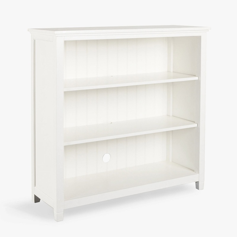This durable Beadboard 3-Shelf Bookcase has plenty of room for books and storage bins. It features three shelves, and classic beadboard paneling. It is expertly crafted of quality kiln-dried solid wood frame to ensure this product will not expand, contract or warp but to last a lifetime.Made in a Fair Trade Certified factory, supporting fair and safe labor practices and empowering workers to invest in their communities. Workers receive extra funds for every product sold which are used for community projects chosen by workers.GREENGUARD Gold Certified to contribute to healthier indoor air, keeping you and your family safer.Crafted from premium woods like pine, hardwood, MDF, premium-quality plywood and veneer.Finish is hand-applied in a multi-step process.2 adjustable shelves.Cutout in back keeps cords organized and easily accessible.Anti-tip kit included: comes with safety-tested mounting hardware, instructions and a nylon strap. To prevent injuries from furniture tip-over, this item should be securely fixed to the wall. how to install anti-tip kits.Imported.