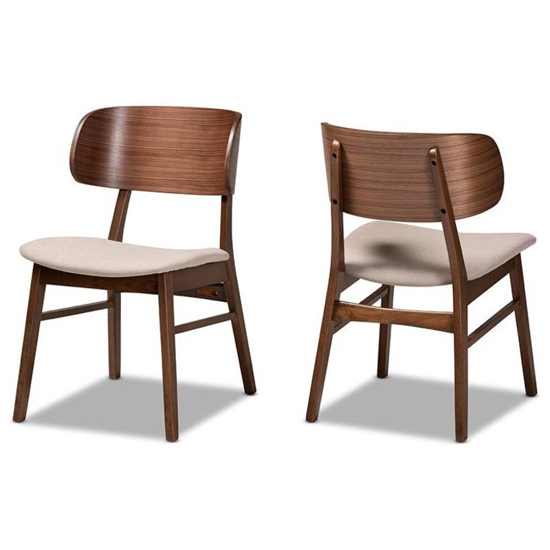 A smooth, comfortable design takes a charming appearance with the Alston dining chair. Made in Malaysia, this chair is constructed from walnut brown finished wood that adds warmth to any interior layout. Its curved wood backrest provides solid back support while creating a unique silhouette. Requiring assembly, the Alston features a bent seat padded with plush foam and upholstered in smooth fabric to offer excellent comfort with every meal. A compact yet expressive addition, the Alston dining chair brings stylish comfort to any dining experience.