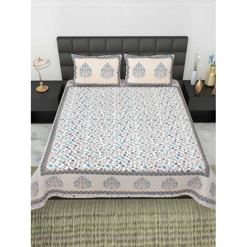 BELLA CASA Ethnic Collection Blue & Pink Cotton 180 TC King Bedsheet with 2 Pillow Covers