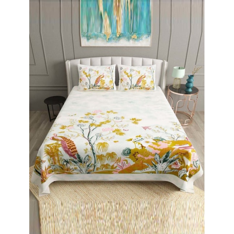 Exhibit your love for art by decorating your bed with this set of 1 king bedsheet and 2 pillow covers from Bella Casa. It is crafted with care using premium-quality cotton. With a thread count of 180, it ensures endearing comfort to your tired nerves.
