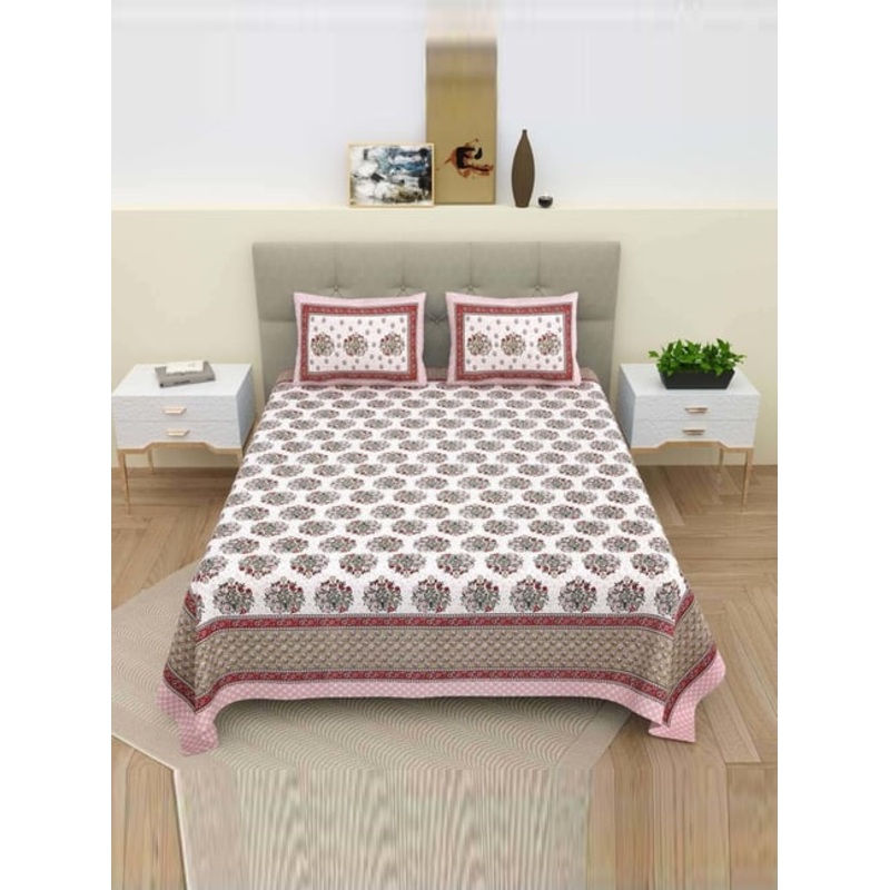 Bella Casa Ethnic Collection Red Cotton 180 TC Bedsheet with 2 Pillow Covers