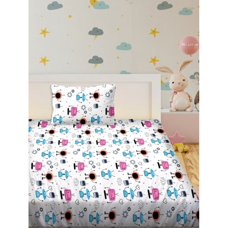 BELLA CASA Kidz Kindom Printed Multicolor 180 TC Cotton Single Bedsheet with 1 Pillow Cover