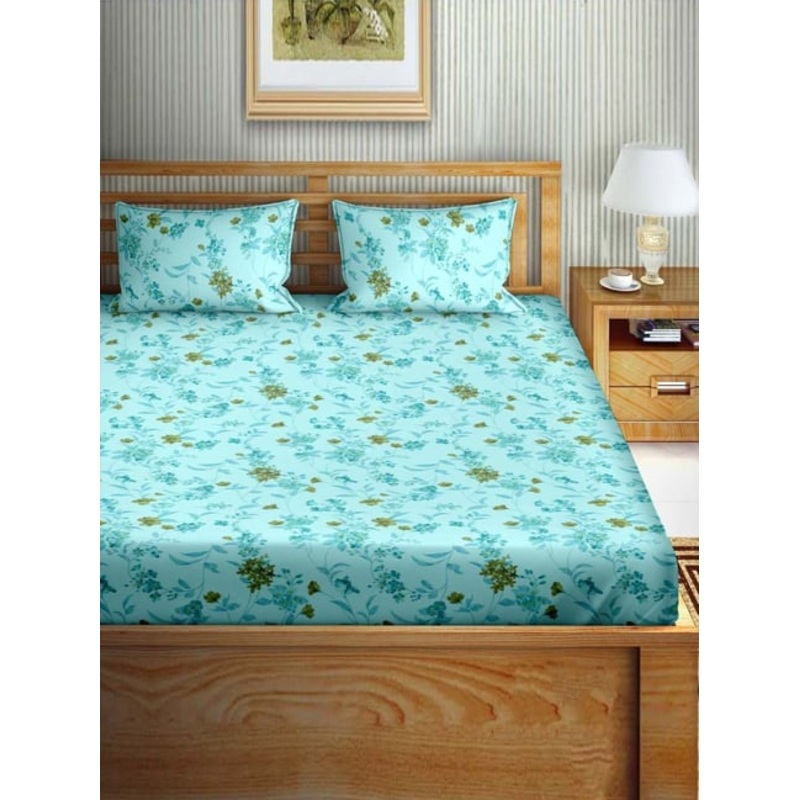 Bella Casa Stella Collection Cyan Cotton 180 TC King Size Bedsheet with 2 Pillow Covers