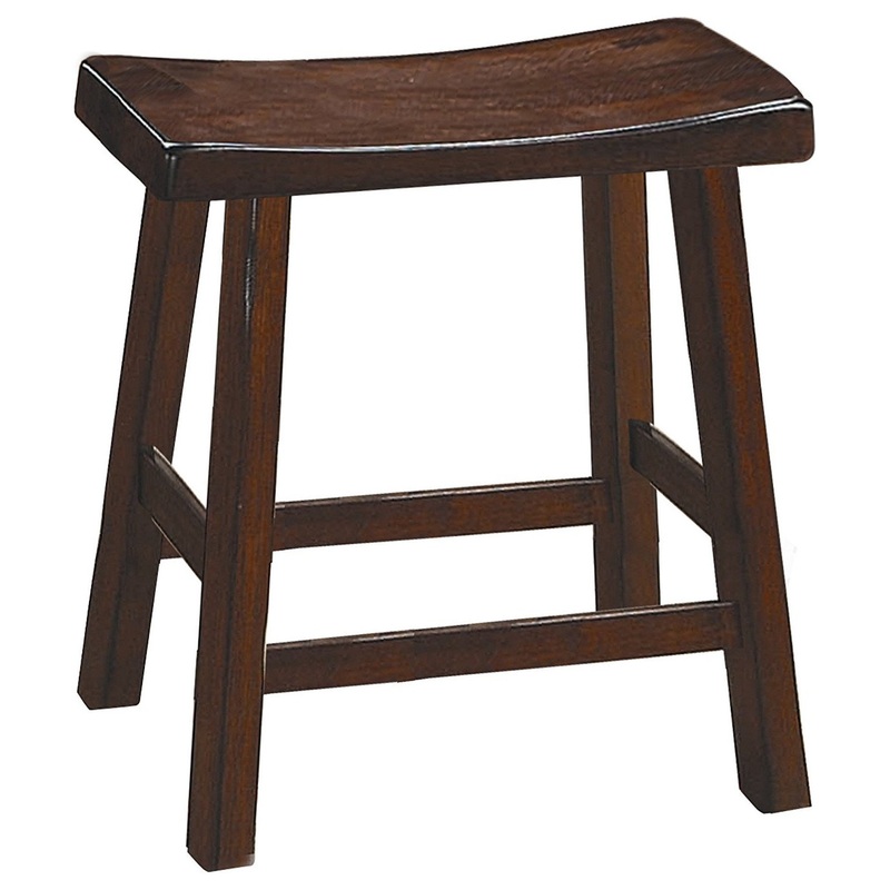 Stay involved with your guests while you are working in the kitchen when you place this 18-inch Counter Height Stool at your breakfast bar. The curvature of the seat provides contour to your body, allowing you or your guests to sit comfortably for hours. Foot rails at varying heights provide comfort and stability for short and tall guests alike. Solid wood construction provides durability, allowing this stool to stand up under heavy use. The sophisticated backless design keeps your room open and airy, so it does not overwhelm your existing decor. The warm cherry brown finish is easy to blend with many decorative color schemes. Dimensions: Width: 18in x Depth: 9in x Height: 18in. It Includes set of 2 counter height stool.