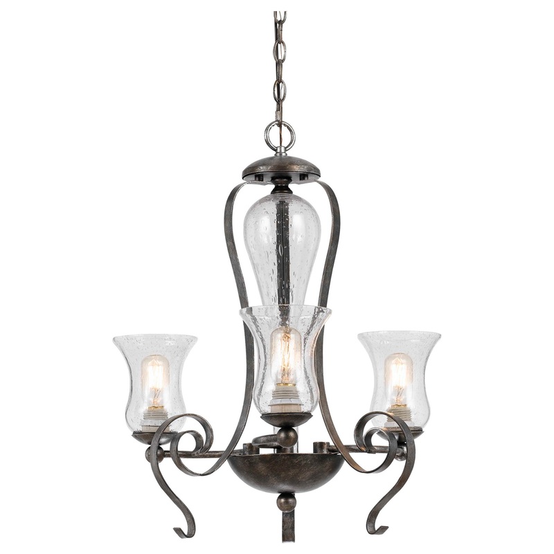 Let the rays of hope and positivity bless your home by lighting up this sophisticated chandelier. It features a durable metal constructed frame with scrolled details, incorporating glass shades that use 3 bulbs of 60 watt each. It is provided with a 6 feet
