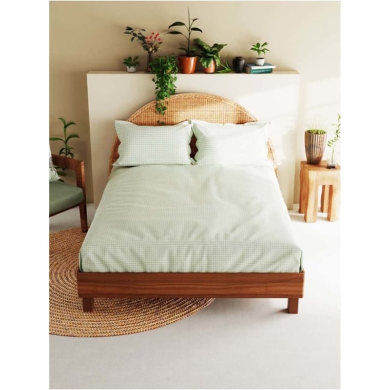 Make your room look exquisite with this set of 1 bedsheet and 2 pillow covers from Bianca. This green bedsheet set exudes a checkered pattern that will let you exhibit your love for home decor. Crafted from cotton with 210 TC and skin-friendly prints, this