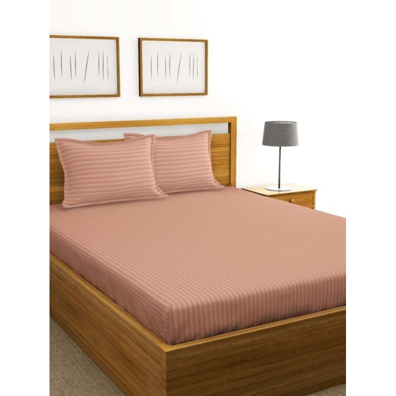 Bianca Hilton Stripes Beige 210 TC Cotton Double Bedsheet with 2 Pillow Covers