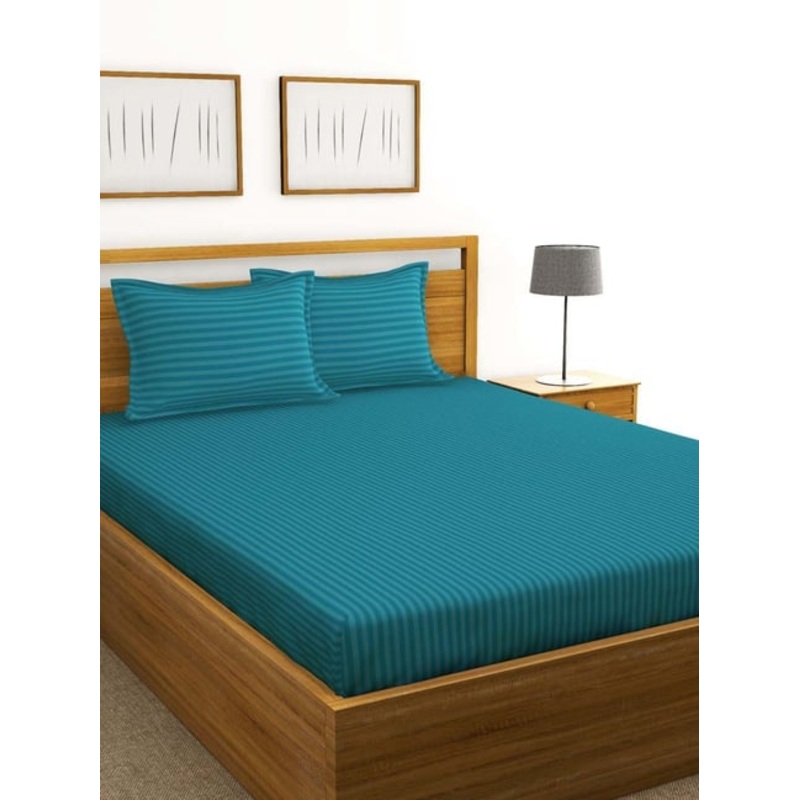 With the feel of a five-star hotel bed, this set of 1 bedsheet and 2 pillow covers from the Hilton collection by Bianca is made from double-mercerized cotton. This beautiful bed set adds charm to your bedroom. Made for your room, the set is easy to maintain. It has a TC of 210.