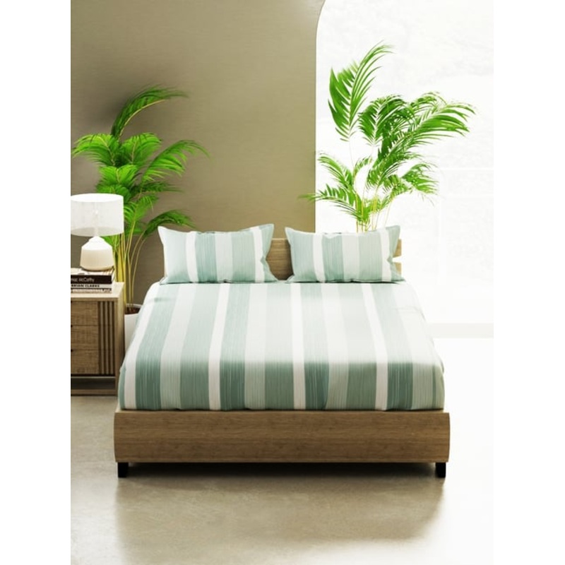 Enhance the beauty of your bedroom interiors with this 100 percent cotton double bedsheet. It extremely comfortable and super soft to touch. Recommended for delicate skin to avoid any rashes. It will comfortably fit your king size mattress. It includes two pillow covers. Machine washable and easy to maintain.