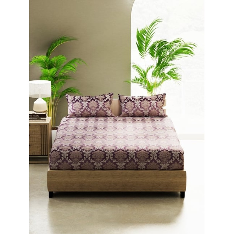 Bianca Home of Ora Purple Cotton Printed 135 TC Double Flat Bedsheet with 2 Pillow Covers