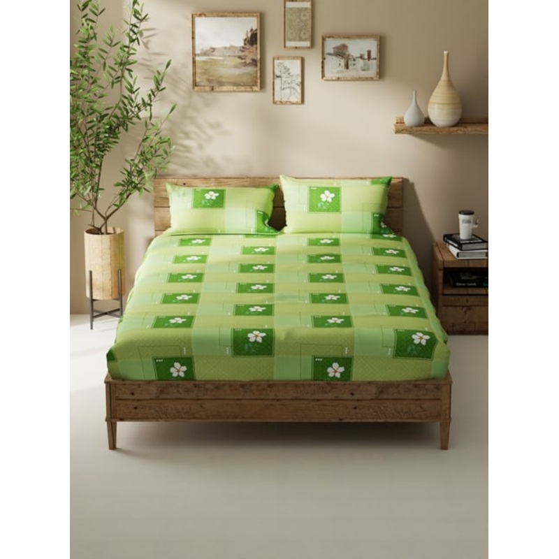 Enhance the beauty of your bedroom interiors with this 100 percent cotton double bedsheet. It extremely comfortable and super soft to touch. Recommended for delicate skin to avoid any rashes. It will comfortably fit your king size mattress. It includes two pillow covers. Machine washable and easy to maintain.