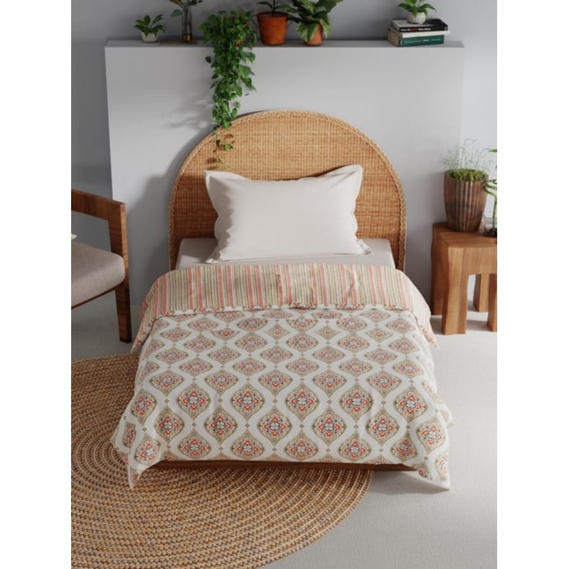 This set of 1 single size dohar from the MEZZO collection by BIANCA is very light in weight, soft and durable which can be used in summers and in ac rooms. It can be used on both sides. It is crafted from 100 percent cotton. With a thread count of 140, the set assures a comfortable slumber experience. It has a fabric quality of 150 GSM.