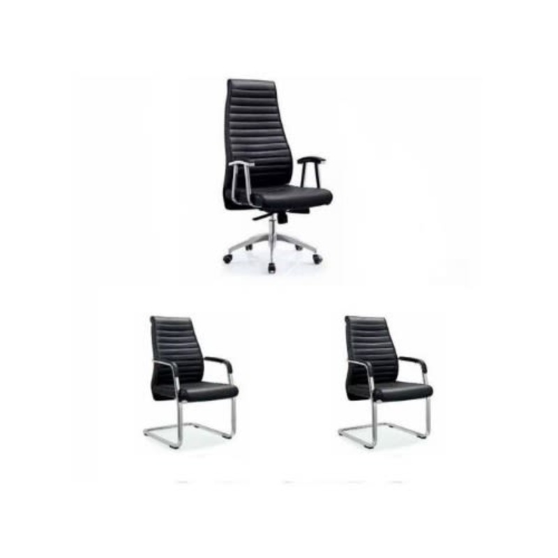 Black Executive Swivel & 2 Visitor Chair-909A & B